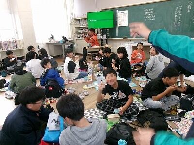 体育館を交代で使用して思い切り体を動かしたり、各教室で趣向を凝らしたレクリエーションを行ったりと、どのクラスからも楽しそうな声が聞こえてきました。お弁当の時間には、教室にレジャーシートを敷いて遠足気分を満喫。