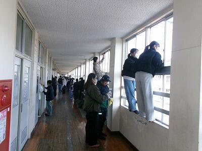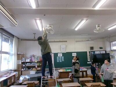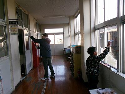 普段の掃除ではなかなか手が届かない、教室や廊下の窓ふき、天井の扇風機などを中心に作業していただき、校内が隅々まで大変きれいになりました。おかげさまで、清々しい気持ちで卒業式や修了式を迎える準備が整いました。