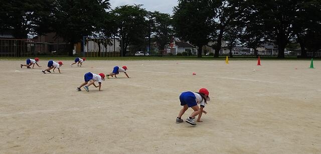 そのあとは、リレーをしました。リレーといっても「いろいろな動き」をさせたいの