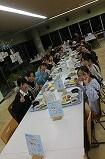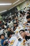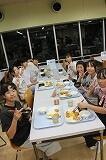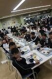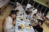 1泊2日の宿泊学習では、施設内のレストランで4回食事をしました。見本を参考に、バイキング方式で、自分たちで、お皿に盛りつけていきました。食べた後に、何度もおかわりに行く様子が見られ、おなか一杯になったようです。生活班ごとに使った皿やテーブルをきれいに片づけていました。写真は1日目の夕食の様子です。