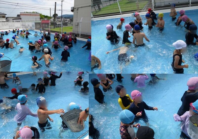 た~くさん水の中に沈んだ宝物を拾って、教師のもつバケツに入れた子どもたちでした!