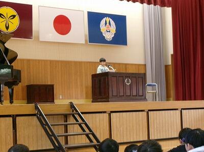 また、始業式後の生活指導の先生からは、漢字の「命・心・挨拶」をキーワードに、特に挨拶は相手を見たらすぐに行う「0秒挨拶」の大切さについてお話がありました。保健面については、「たっぷり寝る・しっかり食べる・たくさん動く」という、健康な体づくりの基本について再確認しました。