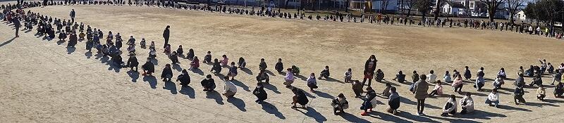 高学年が位置についたら、中学年。そして、低学年の順に運動場に出て、定められた所につきました。