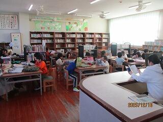 2年生、1組さんは朝から体育で体育館を使っていました。寒さに負けず元気に活動していました。2組さんは図書、自分の好きな本を借りて静かに集中して読んでいました。