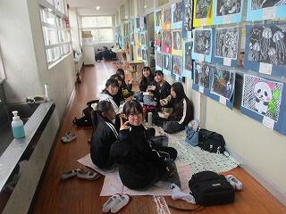 急な天候の変化も予想されたため、急遽校内遠足に切り替えました。お弁当は各クラスでいろいろな形になって食べていました。自作のお弁当でかわいいお弁当やキャラクター入りのお弁当などみんなで見せ合ったり教え合ったりしながら楽しく食べていました。