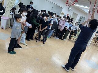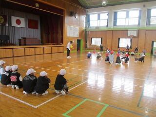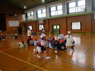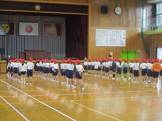 1年生は、雨のため体育館で体育をしていました。集合の号令がかかるとすぐにさっと並んでいました。素晴らしかったです。