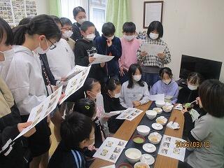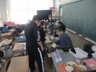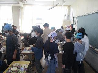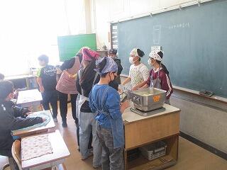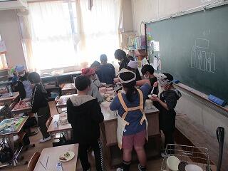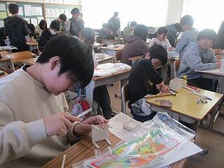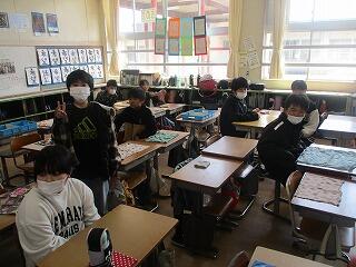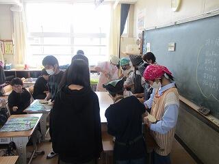 5年生1組は図工、作品の仕上げを行っていました。2組は家庭科で1年間のまとめに取り組んでいました。