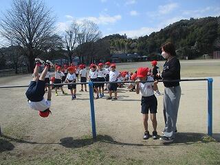 1年生 鉄棒で逆上がりに挑戦していました。もう少しでできる子、スラスラできる子、できなくても一生懸命頑張っている子、みんな素晴らしいなと思いました。
