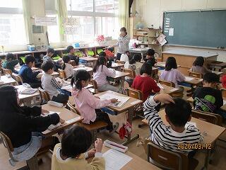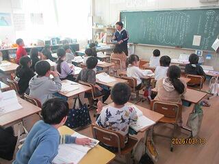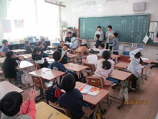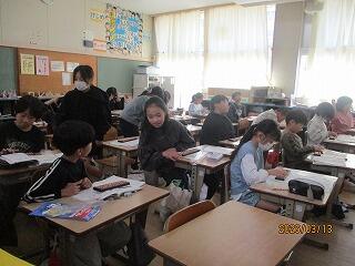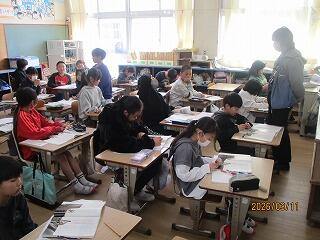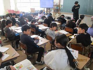 4年生 音楽と理科の授業でした。音楽は卒業式の歌の練習でした。6年生のために一生懸命、練習に励んでいる子どもたちがたくさんいました。理科はみんなで協力して問題に取り組んでいました。