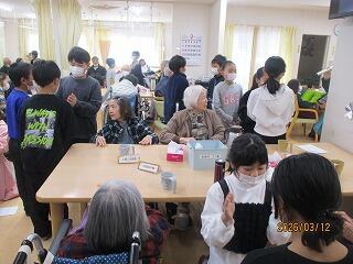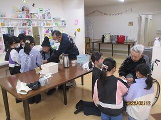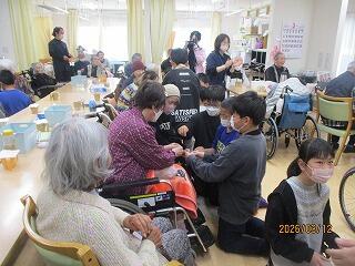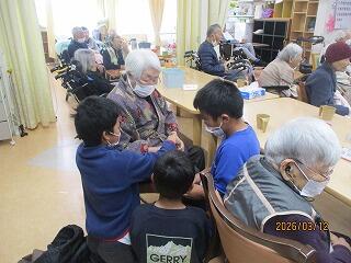 今日は4年1組の子どもたちが「蓼池至福の園」を訪問しました。デイサービスに来られていたおじいちゃんやおばあちゃんと交流しました。歌のプレゼントやふれあいに涙を流して喜んでくださいました。温かな交流に心を癒されたひと時となりました。