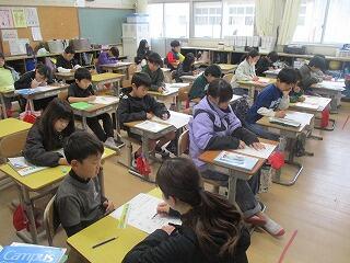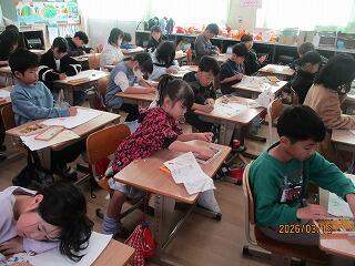 4年生は、1組は理科で紙を使ったもちゃづくりをしていました。2組は復習プリントに取り組んでいました。
