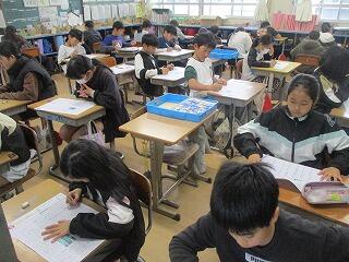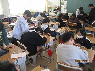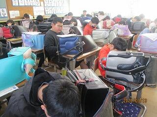3年生 1組は音楽、2組は理科のテストでした。
