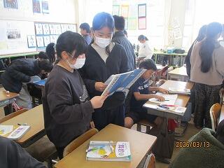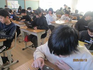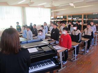 6年生 1組は国語「海の命」主人公太一の考え方について学んでいました。2組は音楽で卒業式の歌の練習をしていました。