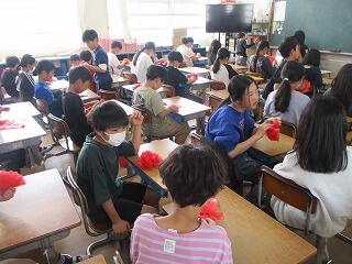 4年生 卒業式の紙花つくりをしていました。きれいに作ってくれていました。
