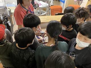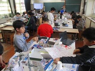 6年生:1組は理科で最先端の医療技術について学んでいました。2組は12歳の力でという題で金槌などを使って工作を行っていました。