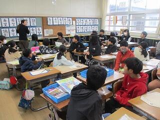 6年生 1組は調べたことの研究発表、2組はお手紙づくりをしていました。