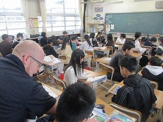 3年生 1組は外国語活動、2組はまとめテストをしていました。
