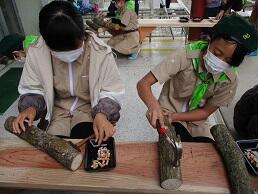 本校では、入団希望児童による「みどりの少年団」活動が行われています。本年度は、コロナウイルス感染拡大により規模を縮小して活動を進めてきました。今回は、年度末の卒団式とあわせて、「しいたけのコマ打ち体験」と「地域福祉施設への花プランターの贈呈」が行われました。しいたけのコマ打ちは、三股町林業研究グループの方々に指導をしていただきました。初めて体験した児童もいて、楽しそうに活動する様子が見られました。また、花プランターの贈呈では福祉施設の方々に喜ばれ、児童は満足そうでした。協力をいただいた林業研究グループの皆様、福祉施設の皆様、保護者の皆様、ありがとうございました。