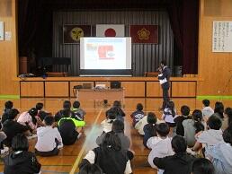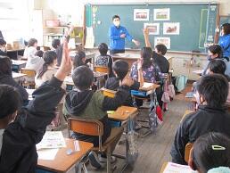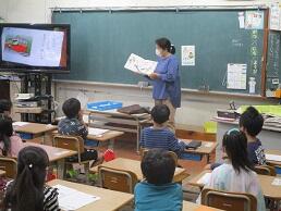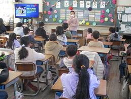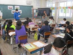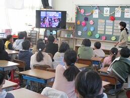 本校では、5年・6年の外国語科の授業には、ALT(外国語指導助手)が入ります。オーストラリア出身の先生でネイティブな発音で、会話の指導をしています。また、3年・4年の外国語活動の授業には、都城市内の小学校の英語教育推進指導教員が入ります。英語の専門的な指導で、英単語や簡単な会話を指導しています。子どもたちは楽しそうに学習しています。