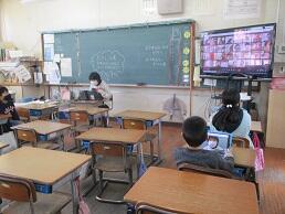 コロナ感染による臨時休業や学年・学級閉鎖の際に備え、オンライン授業の試行をしました。ほとんどの児童が家庭にタブレット端末を持ち帰り、端末を通して教室の担任の先生とオンラインでつながりました。事情により家庭でできない児童は、学校に残ってオンライン授業に参加しました。今後は、緊急時に備えてタブレットの家庭への持ち帰りを進めていきます。