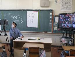 コロナ感染対策のため、5月、6月、7月の初めの全校朝会をズームによるリモート会議方式で行っています。7月の全校朝会では、校長がプレゼンで「よいこと・よくないこと、人の気もちを考えよう」という話をしました。また、人権教育担当の教員も、プレゼンで「大切ないのち、自分をすきになろう」という話をしました。子どもたちは、大型モニタを見ながら熱心に話を聞いていました。