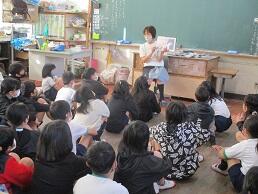 本校には読み聞かせボランティア「よんみろかい」があります。本校の保護者や元保護者、地域の方など20人が登録して、月2回程度、職員朝会の時間帯に読み聞かせを行っていただいています。本年度はコロナ感染対策のためしばらくできませんでしたが、ようやく読み聞かせの活動が始まりました。子どもたちは、ボランティアの方々の読み聞かせに食い入るように聞き入っていました。