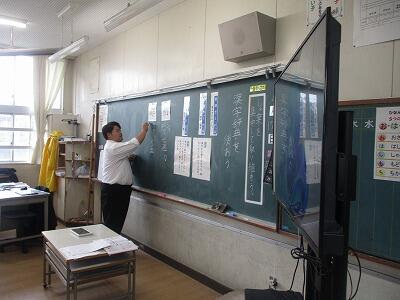 4年生 まとめの学習をしていました。たくさん発表したことが黒板にびっしり書かれていました。