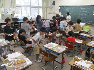 5年生には2人の新しい友だちが都城南小からやって来ました。5年1組のみんなとすぐ仲良くなっていました。