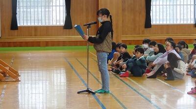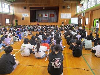今朝はよんみろかいボランティアの皆さんが読み聞かせをしてくださいました。4年生から6年生も楽しく真剣に聞いていましたよ。
