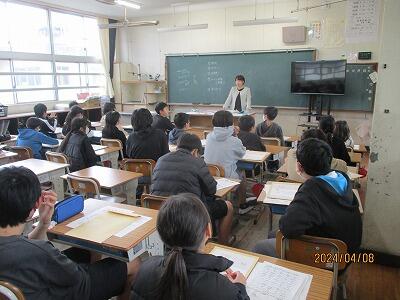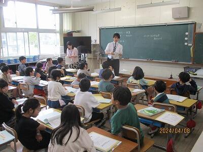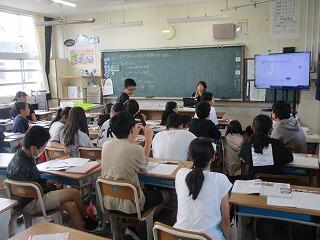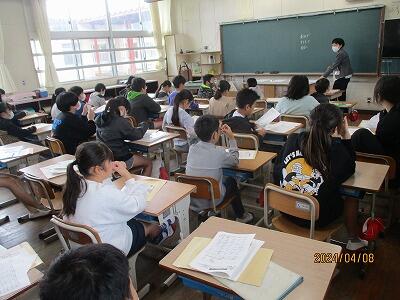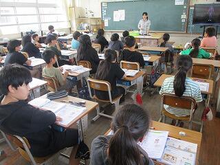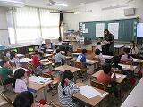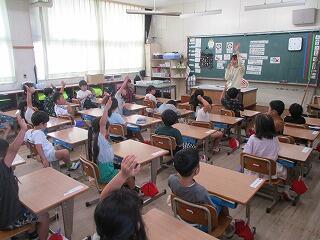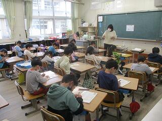 3年生は2組は国語、1組は外国語でした。外国語を教えてくださっているALTのサラ先生は7月までで帰国されるのだそうです。