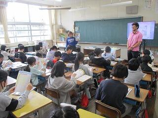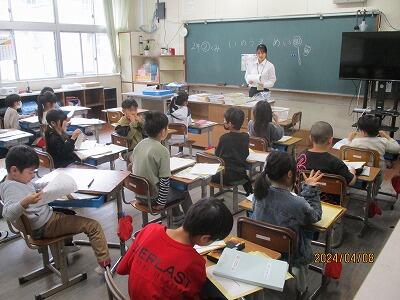 今日は、朝、地域の読み聞かせボランティア「よんみろ会」の方々においでいただき、子どもたちへの読み聞かせを行ってもらいました。各学年学級にお一人ずつ入っていただきました。どの学級でも工夫されていて、おもしろい話や仕掛けに子どもたちも夢中になって聞く姿が見られました。終わると、どの学級からも拍手がわき起こっていました。読み聞かせをきっかけに本をたくさん読む子に育ってほしいです。「よんみろ会」の皆様、本日はありがとうございました。