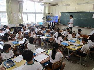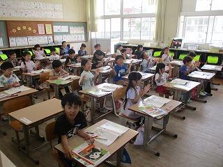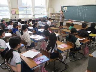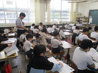 今日は3年1組と5年2組で校内の授業研究会がありました。授業の進め方についてみんなで協議して、より効果的な指導法について研究していく会です。たくさんの先生方が見ている中、国語や算数の問題について、一生懸命考えて分かりやすく理由を付けて発表したり、友だちと話し合ってより良い答えを出し合ったりする姿が見られました。学習の基礎である読む、書く、計算する、素早く準備する、返事や発表などに積極的に参加するなど、随所に子どもたちの素晴らしさがみれた研究授業でした。