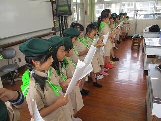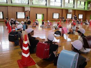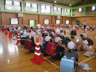 花〇タイムは今日は登校班会がありました。雨の季節に入り,傘の使い方や登下校の注意などの話しが各地区の担当の先生からありました。