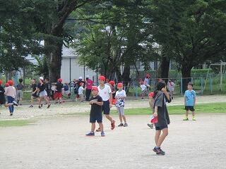 4年生です。学年体育でドッチボールで盛り上がっていました。