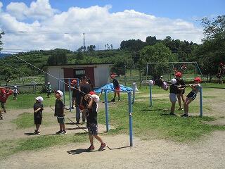 6年生は今日は体育は水泳ができなかったので、みんなで協力して長縄に挑戦していました。