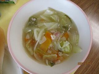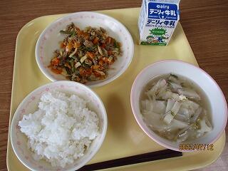 ● ごはん ● ワンタンスープ ● チンジャオロース ● 牛乳 でした。