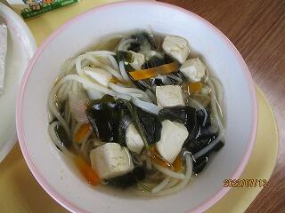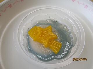 七夕スープには、星と天の川が入っていました(*^▽^*)星は、オクラスライスの形で表現され、天の川は、ライスパスタで表現されておりました。味付けもバッチリでした。おいしい、おいしい(^_^)vトマトオムレツは、とってもかわいらしいサイズでした。ゆでブロッコリーと一緒に盛り付けされて、色合いも良かったです。七夕デザートは、もう誰が見ても七夕感が出ていました。ラムネ味が夏らしいですね~。今日もおいしくいただきました。ごちそうさまでした<(_ _)>