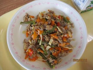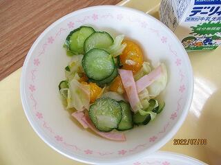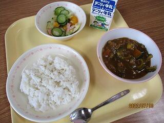 ● ごはん ● 夏野菜のカレー ● ミカンサラダ ● 牛乳 でした。