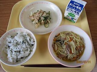 ● 減量ワカメごはん ● 焼豚ラーメン ● カリフラワーのサラダ ● 牛乳 でした。