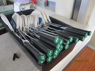 先日、たくさんのバドミントンラケットが修理されて学校へ戻ってきました。ビフォーは写真に撮っていませんので、どんな状態だったのをお見せすることはできませんが、戻ってきたラケットを見て、「新品同様」だと思いました(*^▽^*)子どもたちが屋内運動クラブなどで使用するのに、あまりにもかわいそうな状態だったものを修繕することによって新品同様に蘇らせていただきました<(_ _)>特にグリップがひどかったようです(>_<)担当してくださった会社の方に大感謝です。ありがとうございました<(_ _)>こどもたちの喜ぶ姿が目に浮かびます。笑顔でラケットを振っている顔が見えます。2学期のクラブの日が待ち遠しいですね~。