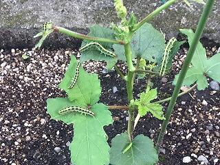 2年生が生活科の学習で植えた、オクラの苗があります。その苗に、毛虫が付いていました(O_O)ネットで調べてみると、オクラの葉っぱによくいる毛虫は「フタトガリコヤガ」と言うそうです。名前の最後からお察しのように、この毛虫は「蛾」の幼虫だそうです。この毛虫は食欲旺盛で、アオイ科の植物を好んで食べます。野菜でいうと、同じアオイ科のオクラが好物なのだそうです。良く食べ、良く大きくなるので、さなぎ手前のものだと体長4センチぐらいまで成長します。良く食べるということは、オクラにフタトガリコヤガがつくと葉っぱがボロボロになることもあるそうです。※最後に毛虫の写真があります。苦手な方は閲覧注意ですよ~<(_ _)>
