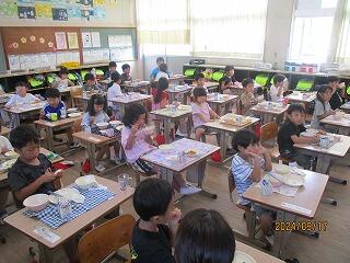 今日の給食は十五夜にちなんだ「だんご汁」や「お月見ゼリー」などが出ました。みんな美味しそうにもりもり食べていました。6年生や5年生の山盛りご飯にビックリしました。あれだけモリモリ食べれば大きくなるはずだわと思いました。