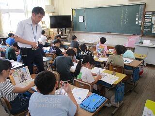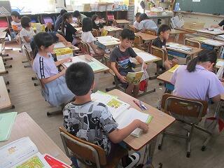 1年生は書写の学習をしていました。字は一生使います。先生の言われることを聞いて、ていねいに書こうと頑張っていました。