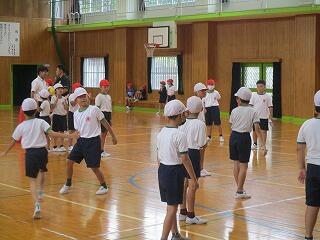 4年生です。学年体育でドッチボールで盛り上がっていました。