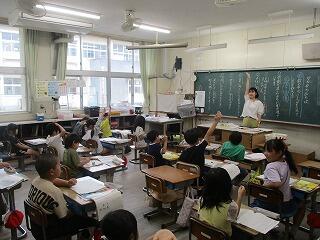 2年生です。国語の授業中でした。前での発表も上手にできていましたよ。