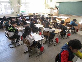 6年生は今日は1組も2組も担任の先生が出張でいませんでした。1組は音楽のテストを受けていました。2組は理科専科の授業を受けていました。さすがは最上級生です。担任の先生がいらっしゃらなくても、しっかりと授業や自習に取り組んでいました。