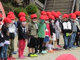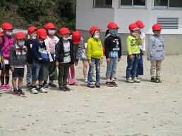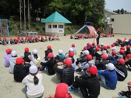 先日入学してきた1年生児童と、2年生から6年生の児童との対面式を行いました。コロナウイルス対策のため、運動場で行いました。かわいらしい1年生をみんなで温かく迎え入れることができました。
