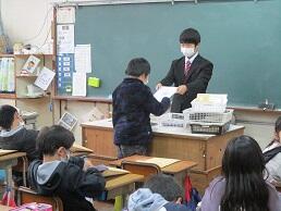 2学期終業の日を迎えました。終業式では、児童代表の3年生児童2名が、「2学期をふり返って」という作文を発表しました。3学期に頑張りたいことまでしっかり考えている内容でした。校長からは、全校児童に冬休みの宿題として「病気やけがをしないように」という話をしました。その後、学級では、学級担任から通知表「あゆみ」が一人一人の児童に手渡されました。受け取った児童が、うれしそうに内容を見る姿が見られました。