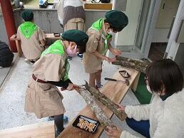 本校では、入団希望児童による「みどりの少年団」活動が行われています。本年度は、コロナウイルス感染拡大により規模を縮小して活動を進めてきました。今回は、年度末の卒団式とあわせて、「しいたけのコマ打ち体験」と「地域福祉施設への花プランターの贈呈」が行われました。しいたけのコマ打ちは、三股町林業研究グループの方々に指導をしていただきました。初めて体験した児童もいて、楽しそうに活動する様子が見られました。また、花プランターの贈呈では福祉施設の方々に喜ばれ、児童は満足そうでした。協力をいただいた林業研究グループの皆様、福祉施設の皆様、保護者の皆様、ありがとうございました。