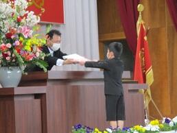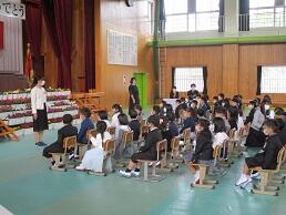 本年度の入学式を行いました。本年度の新入児童は58名です。コロナウイルス対策により、規模を縮小しての入学式でしたが、関係職員、関係来賓、新1年生保護者全員で心を込めて、新1年生の入学をお祝いしました。入学式の中で、新1年生は、名前を呼ばれると全員「はい!」としっかりした返事ができていました。これからの学校生活での活躍が楽しみです。
